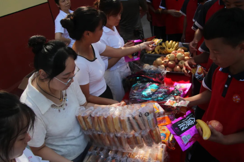 開學典禮步入尾聲,易校長貼心地為同學們送上零食與飲料,讓這份甜蜜與清爽驅散緊張學習的倦意,滿載學校的關懷與溫暖。